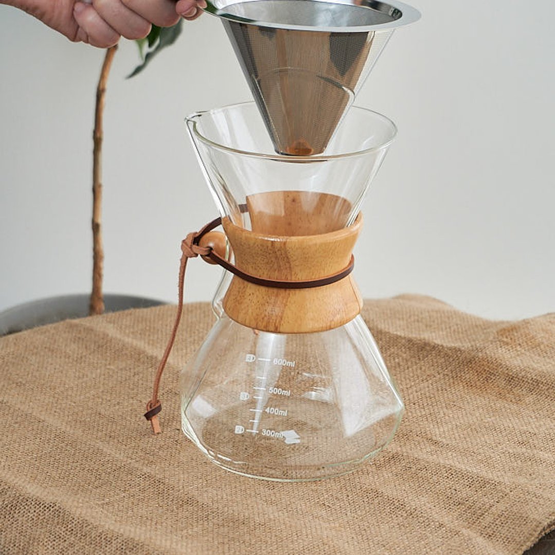 Método de vidrio tipo Chemex 600ml cuello de madera